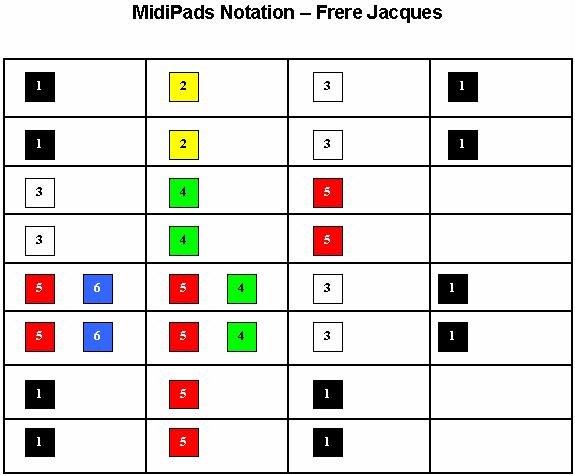 the MidiPads Notation charts can be made for use in music activities.